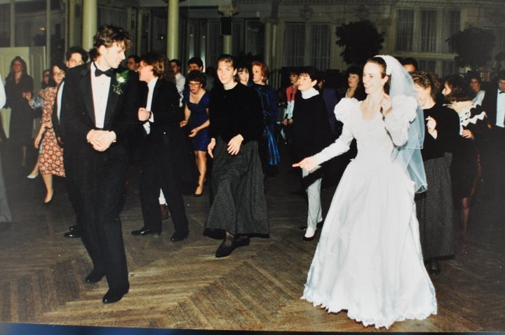 And little did I know that my bridesmaids had to spend time secretly repairing their dresses before the wedding because of the shoddy work done by the dressmaker. We had their dresses made fairly inexpensively…apparently I hadn’t yet learned the lesson “if a price seems too good to be true, then it is.” They valiantly tried to shelter me from this news, but it became glaringly obvious when they were ironing their dresses the morning of our Big Day, and I noticed some stitching in the middle of the skirting where it looked like scissors had cut a four inch line in the middle. “Don’t even look,” they said, steering me away from the ironing board. I knew that story would be saved for another day. My sister was wearing her large bow off her dress (remember this was 1993…bows were still fashionable….I think?) on top of her head by the end of the day. Ah, well the dress looked better without it come to think of it.