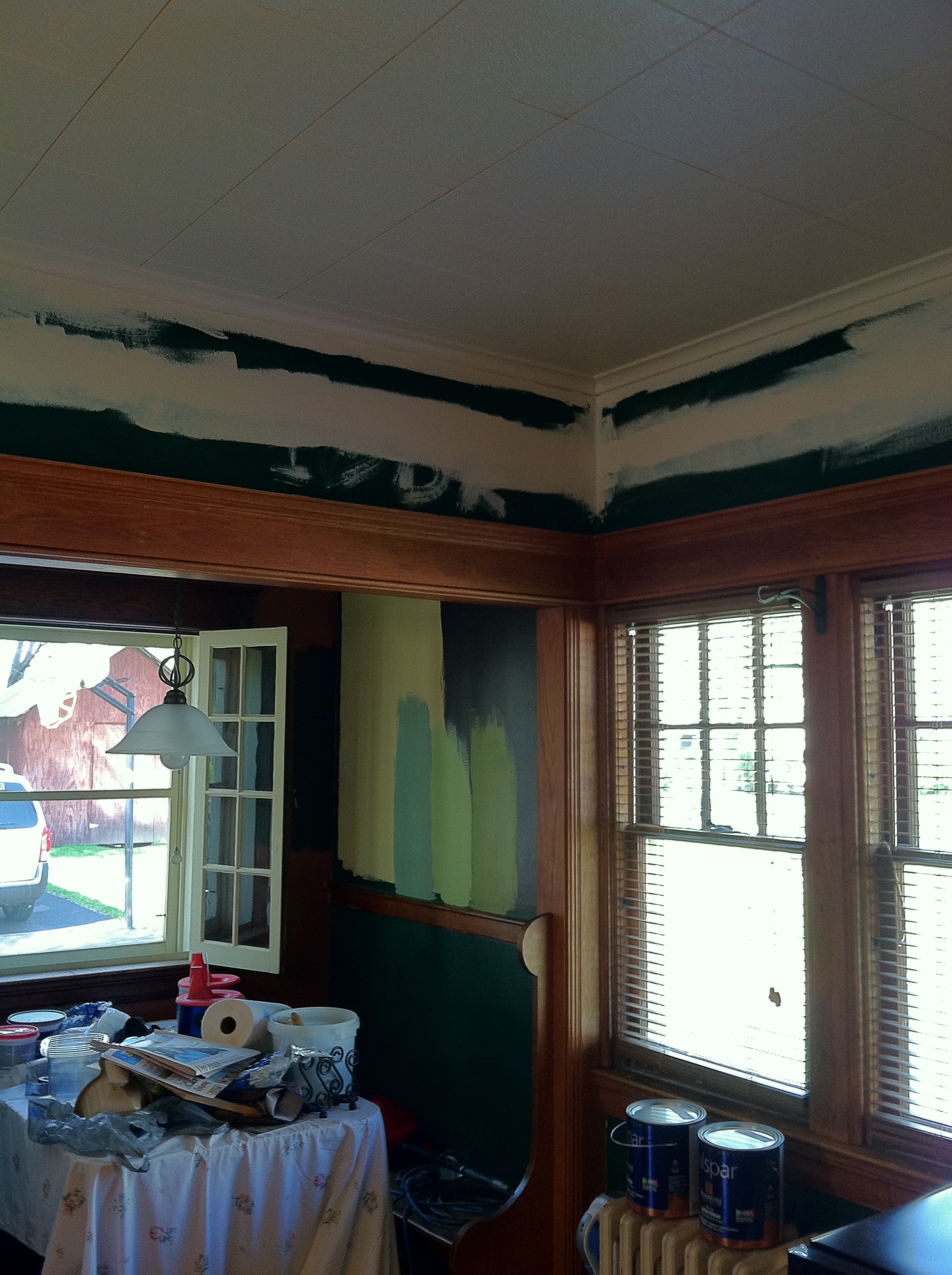 After going through a few samples and color ideas, we came right back around to green, albeit a much different shade. We will see when all is said and done whether or not I like it, but at least it will be fresh and clean when it’s finished.