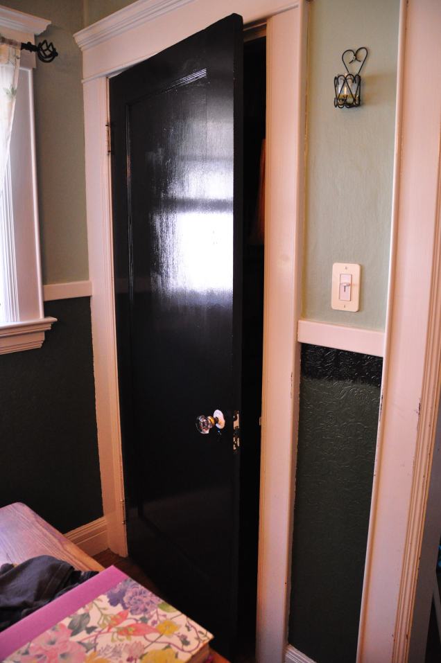 I do believe I’ve mentioned my new obsession with painting things black?  After Zan was inspired to paint the kitchen radiator black last month, my love has just deepened.  I have seen photos upon photos which have made me consider painting all my interior doors black…a bold and gutsy move if you ask me, and not one I was sure I had the intestinal fortitude to attempt, but oh, how I have envied all those doors!